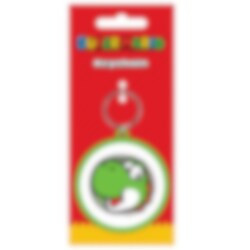 En morsom nøkkelring fra Super Mario med Yoshis smilende ansikt på en rund gummibrikke med grønn kant. Fungerer både som nøkkelring og fidget-leketøy takket være den roterende funksjonen.
