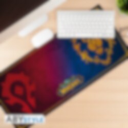 Eksklusiv musematte av høy kvalitet med stilig motiv av Alliance og Horde logoene fra World of Warcraft. Piff opp din spillkrok med denne, eller hvorfor ikke gi den bort som en gave til den som elsker World of Warcraft.