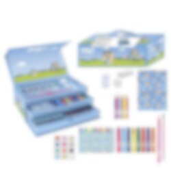 Gjør hver dag til et kreativt eventyr med dette tegne- og malesettet med Bluey, inspirert av de sjarmerende og rampete karakterene Bluey, Bingo, familien og vennene deres.