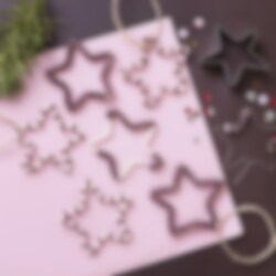 Med vårt Mini DIY-sett kan du enkelt forme stjerner til å henge på juletreet, i vinduet eller bruke dem som kreative julegavepynt. Følg de enkle trinnene: vikle tråden rundt stjernemalen og dekorer med paljetter og rocailleperler for å skape dine egne mønstre.