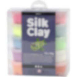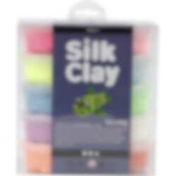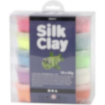 Silk Clay® i 10 fantastiske farger til kreativ lek. Silk Clay® er en selvherdende, fleksibel og myk lettvektsleire (eller modellmasse) som bevarer en skumlignende konsistens etter tørking. Denne pakken inneholder 10 bokser med 40 g av hver farge.