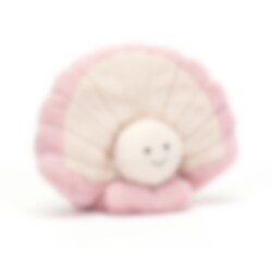 Denne strålende glade og sjarmende muslingen har en unik skjønnhet. Den har en myk perle i semsket imitasjon som hviler i dens vakkert formede og herlig kosete rosa skjell. Broderte stråler på begge sider av skallet gir denne skjønnheten en kjekk struktur og den lille foten lar muslingen stå og vise frem sin smilende perle. Denne lille skaperen av havets skatter har kanskje ingen tilknytning til de legendariske havfruene, men du kan aldri være sikker. Håndvaskes ved behov.