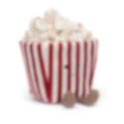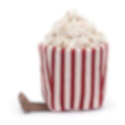 Denne kosete boksen med røde og hvite striper, et lykkelig smil og små blekbrune ben, full av luftige skyer av tofarget popcorn vil gi deg en stor dose glede og en perfekt kosekompis å se film med. En dum og kosete følgesvenn som kan lyse opp dagen din. Laget av 89% polyester, 11% bomull og håndvaskes ved behov.