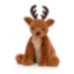 Et kosemykt reinsdyr i karamellbrun pels med beige mage og glatte sjokoladebrune horn. Denne klembare kosekompisen har myke spisse ører, en glatt sjokoladebrun nese, et søtt uttrykk og en herlig kosete kropp. En perfekt følgesvenn for koselige hjemmekvelder og lekne eventyr. Laget av 100% polyester og håndvaskes om nødvendig.