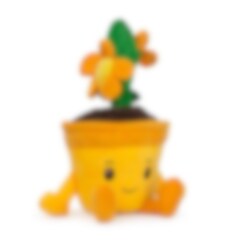 Dette lekne kosedyret forestiller en oransje blomsterpotte i kawaii-stil med et søtt ansikt og en liten blomst på toppen. Den varme fargen og de myke formene gjør figuren både søt og iøynefallende.
