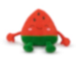 Dette søte vannmelon-kosedyret i kawaii-stil er en fargerik og morsom figur som er lett å like. Med sitt glade ansikt og sin lekne form blir det en sjarmerende detalj for den som liker myke figurer med mye personlighet.