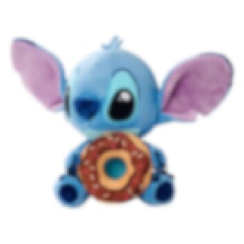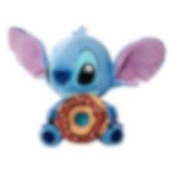 Overrask en fan med dette kosedyret av Stitch med donut, en myk og koselig venn som sprer glede. Den sjarmerende blå skapningen sitter med en stor sjokoladedonut dekorert med fargerikt strøssel i labbene sine.