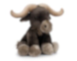 Dette bøffelkosedyret har et kraftfullt, men vennlig uttrykk og et design som gir et realistisk inntrykk. Kombinasjonen av myke materialer og naturtro form gjør at det føles både solid og elsket.