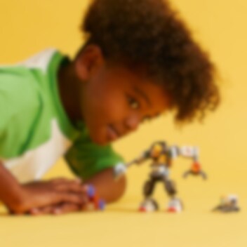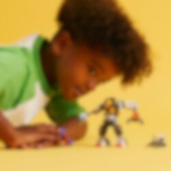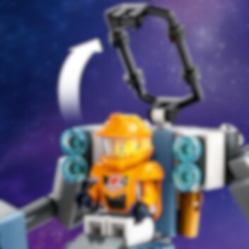 Plasser piloten i cockpiten på den robuste anleggsroboten, og legg ut på spennende gruveoppdrag i verdensrommet. Den tøffe robotdrakten er perfekt til utforskning av nye verdener – den har store, bøyelige ledd, en sterk løfteklo og digre føtter som gjør den stødig ute på oppdrag. Bor etter prøver med anleggsroboten, og bruk hammer- og kloarmene for å bryte løs steiner og avdekke energiproduserende krystaller. Klar? Da drar vi!