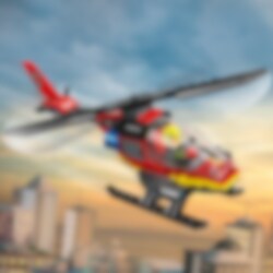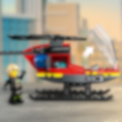 Fest sikkerhetsbeltet, og gjør deg klar for spennende brannslukkingsoppdrag med LEGO® City Brannhelikopter! Finn fram hjelm og kikkert i oppbevaringsrommet, ta plass i cockpiten og få fart på rotorbladene for å ta til luften. Nå fram til brannstedet på rekordtid, og start de kraftige vannkanonene for å slukke brannen i en fei! Gøyale brannoppdrag venter i LEGO City.