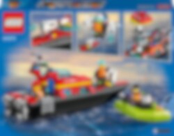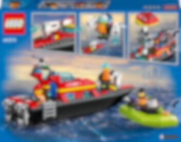 «Hjælp!» PLASK! En liten speedbåt brenner, og båtføreren har hoppet i vannet! Få City brannvesenets kjappe redningsbåt på vannet, og fres av gårde for å redde båtføreren. Etterpå kan brannbetjenten ta på seg den tøffe jetpacken og slokke brannen med båtens brannslokkerutstyr. Når må du rykke ut igjen? I LEGO® City er det du som bestemmer!