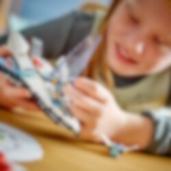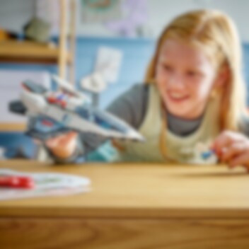 Start hovedrakettene, angi lysets hastighet og reis til verdensrommets ytterkant med dette hypersoniske romskipet. Konverter droneroboten til en kraftig jetpack for å utforske planeter og ta dristige spaserturer i verdensrommet. Gled deg til utallige intergalaktiske eventyr med LEGO® City romfartsmannskapet!