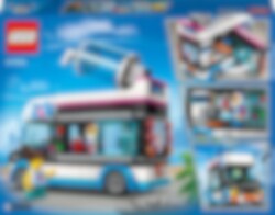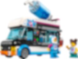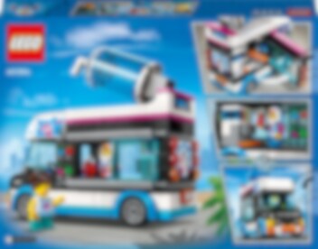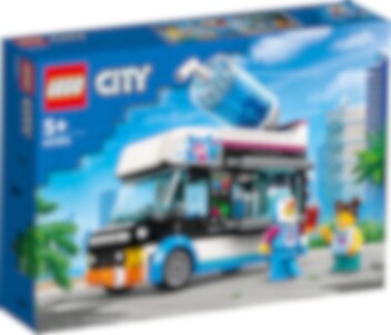 Hurra, Pingvinens slush-bil har kommet til LEGO® City! Denne kioskbilen med kalde drikkevarer er utrolig kul! Sjekk ut den iøynefallende pingvindesignen! Heng med den pingvinkledde kioskansatte i tilberedningsområdet, og skyv til side vinduet for å servere tørste kunder kalde drikker i fire fruktsmaker. Etterpå kan du sette deg bak rattet for å kjøre til neste sted!