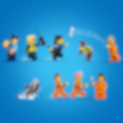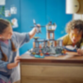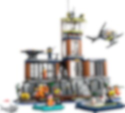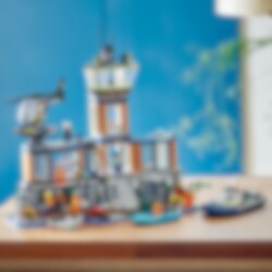 Spänningen byggs upp på fängelseön där LEGO® Citys mest eftersökta brottslingar planerar en av historiens största och mest vågade utbrytningar! När nya fångar anländer med polismotorbåten är de andra fångarna upptagna med sina planer. Håll utkik från kontrolltornet och håll extra koll på polishelikoptern – det här fängelset är inte så säkert som det verkar! Är det där ljudet av någon som gräver?