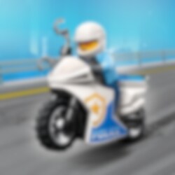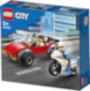 HVIIIIN! Stopp! Skurken stikker av med pengene han har stjålet! Få den superraske politimotorsykkelen på veien, og hjelp LEGO® City politikonstabelen med å fange skurken. Sett på ham håndjern, og kjør ham til nærmeste fengsel. Spennende skurkejakt venter i LEGO City!