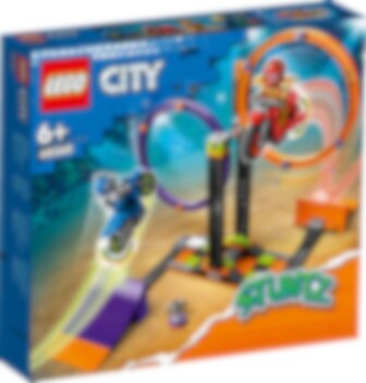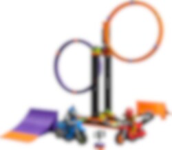 Forbered deg på en vill LEGO® City Roterende stuntutfordring! Test ferdighetene dine, lag episke oppsett eller konkurrer mot venner eller familie. Lås ringene på plass, sett i gang den svinghjulsdrevne stuntmotorsykkelen og kjør opp rampen i full fart for å utføre det perfekte hopp. Lås deretter opp ringene, og roter dem for å gjøre utfordringen vanskeligere. Hvem vinner pokalen? Det finner du snart ut – lykke til!