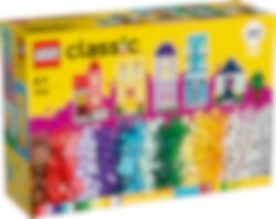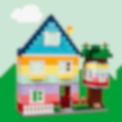Inspirer unge byggere med LEGO® Classic Kreative hus (11035). Barn kan bygge dette LEGO byggesettet bestående av seks fargerike hus med vinduer, dører og tilbehør som inspirerer kreativiteten, gir bedre konsentrasjon og styrker evnene til problemløsing hos jenter og gutter fra fire år. Barn kan følge de enkle instruksjonene og bygge seks ulike modeller i forskjellige høyder og former. De kan fortsette den kreative moroa ved å legge til ekstra klosser for å gjøre husene høyere, og bytte ut dører, vinduer, tak, hager og mer for å endre utseendet på husene. Det følger med åtte ideer som inspirerer barn til å bygge videre på de kreative modellene. De kan skalere opp moroa ved å bygge et ekstra stort LEGO hus med masser av klosser og deler fra settet. Det medfølger også instruksjoner i LEGO Builder appen, som lar barn forstørre og rotere modeller, og spore fremgangen. LEGO Classic leker er fulle av ideer og inspirasjon som lar foreldre dele utviklingsmessige milepæler i barnas liv.