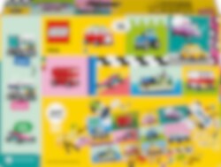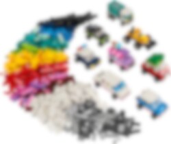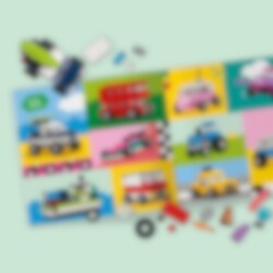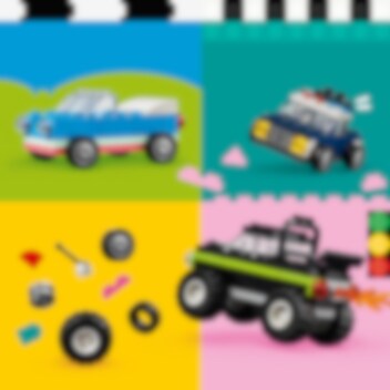 Spenn deg fast, og gi full gass med en kjempekul samling av LEGO® kjøretøy som kan tilpasses! Bygg en politibil, isbil, ATV, frontlaster, lastebil, limousin, et terrengkjøretøy og en stasjonsvogn. Bruk fargerike klosser, spesielle deler og 50+ hjul for å tilpasse doningen. Oppdag ti ideer for å gjøre bilene enda kulere!