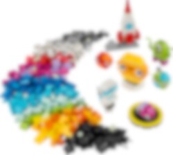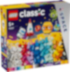 LEGO® Classic Kreative planeter (11037) leken sender unge astronauter og stjernekikkere fra fem år ut på en kreativ reise for å utforske verdensrommet. Den enkle solsystemleken er enkel å bygge, og astronauten og romferge-modellsettet er ideelt for barn som vil bygge, leke og dra på dristige eventyr hvor ingen LEGO bygger før har dratt! Barn kan bruke de fargerike klossene til å bygge en romfergeleke, et romvesen, en astronaut og et minisolsystem med Mars, jorden, solen og Saturn med ringer. Det er mulig å tilpasse romfartsmodellene med andre farger, former, øyne, uttrykk og et stativ for å rotere modellen. Det følger også med klosser som lyser i mørket etter leggetid. Den kosmiske kreativiteten fortsetter med ulike byggealternativer, blant annet et fullstendig solsystem med åtte planeter. Du finner også instruksjoner og digitale funksjoner i LEGO Builder appen. LEGO Classic leker er fulle av ideer og inspirasjon som lar foreldre dele utviklingsmessige milepæler i barnas liv.