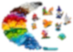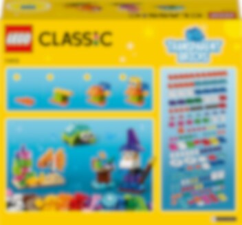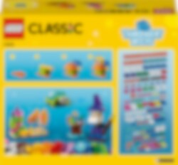 Barn kan lage glitrende LEGO® modeller med LEGO Classic Kreativitet med gjennomsiktige klosser. Settet inneholder et fargerikt utvalg av gjennomsiktige LEGO deler og åtte glitrende modeller, blant annet en trollmann med eliksirflasker og en skinnende robot som serverer te. Barn kan dessuten bygge ting de finner på selv med tilleggsklossene som følger med, og underveis tilegner de seg ferdigheter de har nytte av gjennom hele livet.
