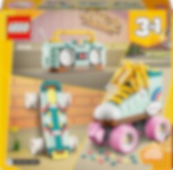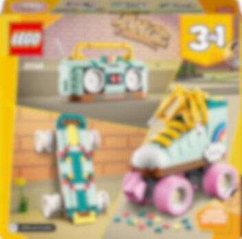 Kreative barn fra åtte år kan reise bakover i tid med det fargerike byggesettet LEGO® Creator Retro-rulleskøyter (31148). Settet inneholder en LEGO lekerulleskøyte med fire roterende, rosa hjul, rosa bremsekloss, tykke, gule lisser og et utvalg fargeglade deler som barn kan dekorere hælen på rulleskøyten med. Med dette LEGO Creator 3-i-1-settet får barn tre forskjellige bygge- og lekeopplevelser med det samme settet med klosser. De kan bygge en lekerulleskøyte og deretter bygge den om til et fargerikt skateboard i miniatyr med fire roterende hjul eller en radio-/kassettspiller med antenne i retro-stil. Når leken er ferdig, kan barn stille ut en av de tre modellene som blikkfang på rommet sitt. LEGO Creator 3-i-1-sett er flotte gaver til barn og inkluderer tre alternative modeller i hver eske, som barn kan bygge, bygge om og bygge på nytt. Med 3-i-1-sett får barn utallige timer med lek og moro med flotte modeller som gjenspeiler interessene deres, deriblant lynraske kjøretøy, fantastiske dyr og detaljerte bymiljøer.