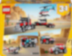 Fartsfylte eventyr venter på jenter og gutter fra sju år med lekesettet LEGO® Creator Trailer med helikopter (31146). De kan bruke 3-i-1-settets 270 deler til å bygge en tøff transporttrailer med roterende hjul, som kan frakte et LEGO helikopter med dreibare rotorblader på hengeren. Med denne LEGO Creator 3-i-1-leken kan barn bygge tre forskjellige kjøretøysett med to separate kjøretøy. De kan enten bygge en trailer med helikopter, et propellfly med tankbil med roterende hjul eller en hotrod og SUV som kan konkurrere i billøp. De kan også bruke klossene til å bygge kjøretøy de finner på selv. LEGO Creator 3-i-1-sett er flotte gaver til barn og inkluderer tre alternative modeller i hver eske, som barn kan bygge, bygge om og bygge på nytt.Med 3-i-1-sett får barn utallige timer med lek og moro med flotte modeller som gjenspeiler interessene deres, deriblant lynraske kjøretøy, fantastiske dyr og detaljerte bymiljøer.
