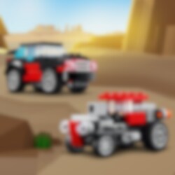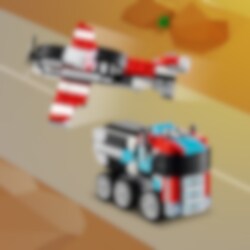 Se opp! Et helikopter skal til å lande på trailerhengeren. Så snart det har landet, kan du bygge om LEGO® Creator Trailer med helikopter til et kraftig propellfly med tankbil eller en hotrod-racerbil og SUV, som kan konkurrere i spennende billøp. Barn kan også bruke fantasien og finne på egne kjøretøy. Den actionfylte leken fortsetter i det uendelige med dette 3-i-1-kjøretøysettet!