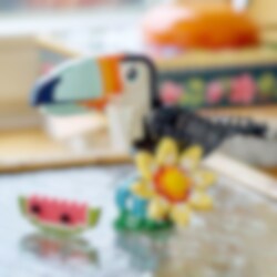 Bygg en fargerik tropisk tukan og bygg deretter om til en gecko eller en tropisk fisk med de samme klossene! Ville dyr: Tropisk tukan (31173) er et vakkert Creator 3-i-1-sett med 225 klosser. Tukanfiguren sitter på en gren med en stor blomst og en vannmelonbit. Tre tropiske dyrebygg for naturelskere fra 7 år.