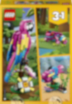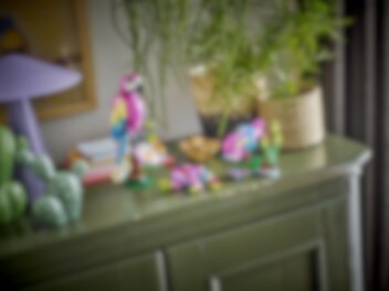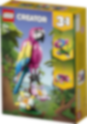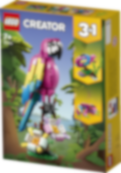 Små byggere og dyreelskere fra sju år kan reise langt inn i regnskogen og oppleve actionfylte fortellinger med byggesettet LEGO® Creator 3-i-1 Eksotisk, rosa papegøye (31144). Settet inneholder en rosa og blå papegøye som kan bevege vingene og halefjærene samt vri kroppen helt rundt mens den sitter på en gren. 3-i-1-leker får fart på den kreative leken Barn kan bygge tre eksotiske dyr med dette flotte LEGO 3-i-1-settet. De kan bygge en fargesprakende papegøye som sitter på en gren, og deretter bygge den om til en leken fisk som svømmer langs havbunnen, eller en frosk som kan bevege bena. En gøyal, digital opplevelse for LEGO fans Last ned appen LEGO Builder, og stig inn i en ny verden, full av byggemoro, hvor barn kan zoome og rotere modeller i 3D, lagre sett og spore fremdriften sin.