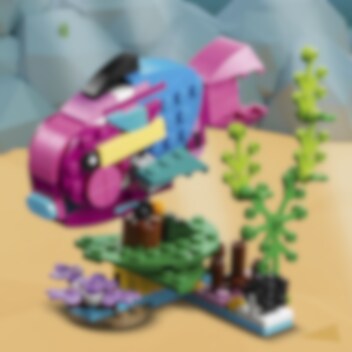 Dra på gøyale eventyr i regnskogen med tre eksotiske dyr! Du kan bygge en eksotisk, rosa papegøye som sitter på en gren, omgitt av fargerike blomster. Etterpå kan du bygge den om til en rosa og blå fisk som svømmer i havet, eller en fargerik frosk som kan bevege beina. Få timevis med morsom lek med de detaljerte og bevegelige modellene i dette 3-i-1-lekesettet.