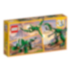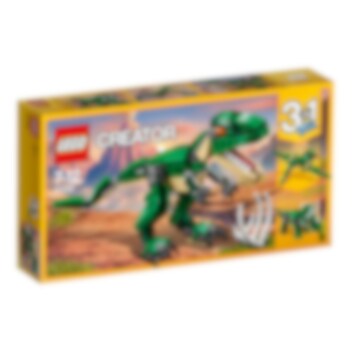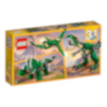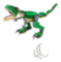 Tramp i vei med denne fryktinngytende T-Rex-en. Den er mørkegrønn og beige og har knall oransje øyne. Munnen kan åpnes, så de knivskarpe tennene vises. De digre klørne, hodet og halen kan beveges på mange måter. Settet inneholder også restene etter T-Rex’ siste måltid! Kan bygges om til andre mektige dinosaurer: en diger Triceratops eller en skummel Pterodactyl.