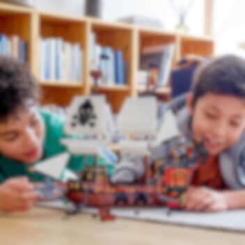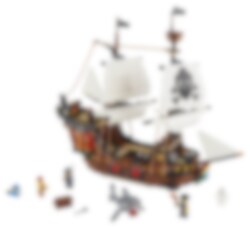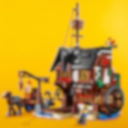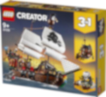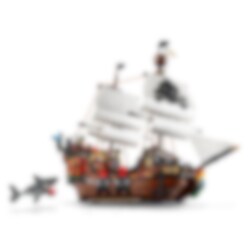Splitte mine bramseil! Sett seil, hev anker og legg ut på seillas med den flotte sjørøverskuten! Hold utkikk etter skip å plyndre – lasterommet begynner å bli tomt. Ohoi, skip til styrbord! Få kanonene i posisjon, og gjør klar til å skyte: Dette blir nok et rikt bytte, ja! Etterpå kan du bygge om skipet til et vertshus for sjørøvere eller den mystiske hodeskalleøya. Det er alltid full fart med dette flotte 3-i-1-settet!