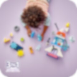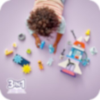 Reis ut i verdensrommet med smårollingen din. Dette 3-i-1-romskipet fyller leken med intergalaktisk moro, hvor førskolebarn får i oppdrag å lete etter vennligsinnede romvesener. Små barn fra tre år får finpusset finmotorikken og evnen til å uttrykke seg gjennom kreativ rollelek. Denne allsidige romskipleken kan bygges om til to andre fartøyer som gir barn enda flere eventyr!