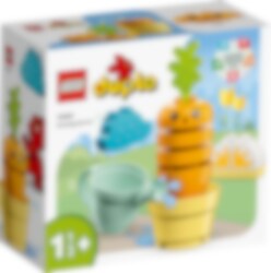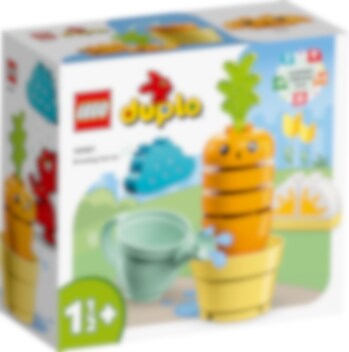 Med det pedagogiske settet LEGO® DUPLO® Min første gulrot som vokser (10981) lærer barn om sunne matvaner og dyrking av planter på en gøyal måte. Dette fargerike settet er laget for å vise smårollinger fra 18 måneder hvordan de kan dyrke en gulrot og få den til å vokse ved å stable klosser oppå hverandre. La førskolebarn bestemme været selv med sol- og regnsky-klosser og gi planten det den trenger for å vokse. Og trenger planten litt ekstra, kan barn vanne den med vannkannen. Se så overrasket gulroten ble! Det vannet må jammen ha vært kaldt! Det er gøy å lære med pedagogiske leker Alle LEGO DUPLO leker er utviklet av eksperter og byr på gøyale fortellinger, sterke farger, engasjerende figurer og masse detaljer som inspirerer barn til fantasifull lek og tidlig utvikling av ferdigheter.