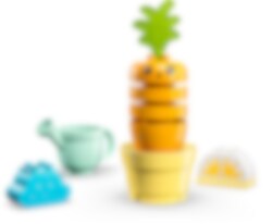 Stimuler barns fantasi med et gøyalt og stabelbart lekesett som lærer dem sunne vaner og viser dem hvordan planter vokser. Smårollinger kan plante en gulrot og se den vokse når været er gunstig, og vanne den med vannkannen. Den lettbygde gulroten består av store klosser i glade farger og byr på timevis med lek, læring og stabling.