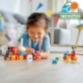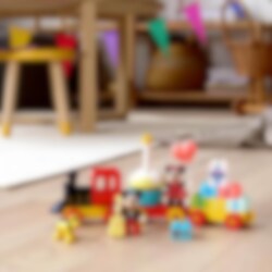 La førskolebarn leke seg med tall, boltre seg med kreativ bygging og oppleve ekte Disney-magi! Settet byr på mengder av utviklende aktiviteter sammen med Minni Mus, Mikke Mus og Pluto om bord i bursdagstoget. Smårollinger bruker finmotorikken sin når de stabler tallklossene, de utvikler kreativiteten når de dekorerer vognene og de tilegner seg sosiale ferdigheter når de rollespiller med Disney-figurene. Bli med på tur med Disney-leketoget!