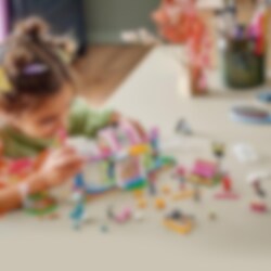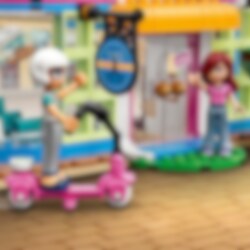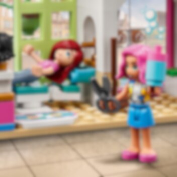 Barn fra seks år kan ha det gøyalt med Paisley og Olly hos frisøren med settet LEGO® Friends Frisør (41743). Her møter de sjenerte Paisley som gruer seg til å klippe håret fordi hun ikke vet hva hun kler. Heldigvis er bestevennene hennes Olly der og kan hjelpe henne. Barn kan lage historier, hvor de to vennene drar til Nadias frisørsalong for å gi Paisley en helt ny stil. Settet byr på mange aktiviteter med vaske- og stylingområde i salongen og tyggismaskin, scooter-parkering og en utendørs benk. Når Paisley er klar, kan barn gi henne bytte frisyre og ansiktsuttrykk på dukken for å gi henne en ny stil. Få enda mer moro Med appen LEGO Builder får barn en enkel og intuitiv byggeopplevelse. Her kan de zoome og rotere modeller i 3D, lagre sett og spore fremdriften sin. Velkommen til neste Heartlake City generasjon Barn får nye venner, kan utforske spennende steder og iscenesette realistiske situasjoner i LEGO Friends universet