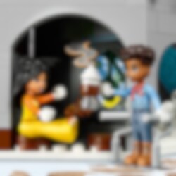 Barn fra ni år som elsker å leke i snøen, kan gå på spennende oppdagelsesferd i det flotte lekesettet LEGO® Friends Skibakke og kafé (41756). Barn kan bygge et fjellscenario med skibakke, skibutikk og kafé før de utstyrer figurene Liann, Zac og Aron med snøbrett, ski og hjelmer. Etterpå kan de sende figurene ned bakken i full fart, før de skjemmer dem bort med varm kakao på kafeen. Settet inkluderer også en hemmelig hule som barna skal finne, samt en fjellrev som barn kan bruke i kreative fortellinger om lek og moro i snøen. Få enda mer moro Appen LEGO Builder gir barn en enkel og intuitiv byggeopplevelse. Her kan de zoome og rotere modeller i 3D, lagre sett og spore framdriften sin. Velkommen til neste generasjon i Heartlake City Barn kan få nye venner, utforske spennende steder og iscenesette realistiske situasjoner i LEGO Friends universet.