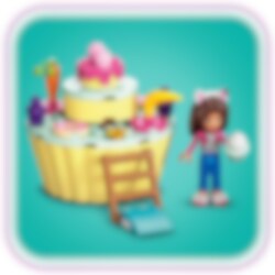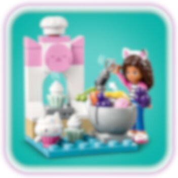 Bli med Gabby og Kakemons på kjøkkenet for å bake en cupcake! Bland ingredienser i bollen, og sett den inn i den søte kokkekatt-komfyren. Etterpå kan dere dekorere en kjempestor cupcake med godsaker. Kakemons bruker en stige for å nå opp. Når dere er ferdige, kan dere beundre det kreative resultatet ved å snurre kakens topp rundt og rundt.