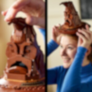 Vis fram den magiske Trollmannsverdenen med en klossebygd modell av Galtvorts valghatt som byr på mange overraskelser! Få hatten til å snakke ved å vippe på hattens tupp, eller plassere den på hodet. Da spilles en av 31 mulige lydkombinasjoner av,men hvilken vet du aldri! Hvor plasserer valghatten deg – blir det Griffing, Smygard, Håsblås eller Ravnklo? Den gøyale utstillingsmodellen inkluderer en sokkel og en minifigur av Harry Potter.