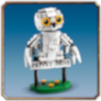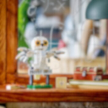 Bygg, lek og still ut denne magiske modellen av snøuglen Hedvig! Gjenskap Harrys kjæledyr i ekte LEGO® stil, og plasser uglens hode, vinger og hale i søte positurer. Plasser Hedvig på gateskiltet til Hekkveien, hvor Harry Potter bor sammen med Dumlingene. Hva inneholder Harrys koffert? Et portrett av Harry og foreldrene hans, et eksemplar av boken A History of Magic og en tryllestav!