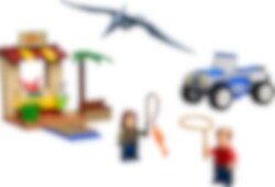 Dette flotte settet som er inspirert av filmen Jurassic World Dominion, har alt barn trenger for actionfylt lek. Settet inneholder en klossebygd kai, fiskebod og buggy, minifigurer av Owen Grady og Maisie med fiskestang og lasso samt en pteranodon-figur. La jakten begynne!