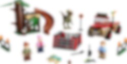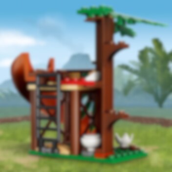 Heng sammen med Ben, Brooklynn og Claire Dearing i Camp Cretaceous. Kjør til den kule trehytta i terrengbilen. Den har både seng, vask, toalett, stige og til og med en sklie til Ankylosaurus-ungen Bumpy! Men se deg for! En Stygimoloch har rømt og sprer kaos på Isla Nublar. Lokk dinosauren inn i buret igjen med en gulrot. Etterpå må du fjerne all dinosaurbæsjen med spaden!