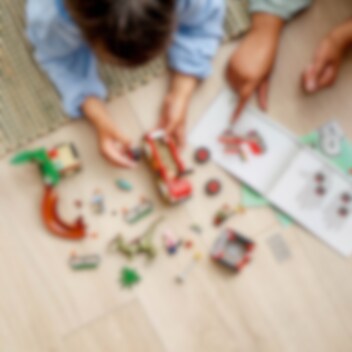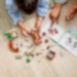 Små barn kan lære å bygge og finne på spennende historier med lekesettet Stygimoloch på rømmen (76939). Settet er inspirert av animasjonsserien Jurassic World Camp Cretaceous og inkluderer lekefigurer av en Stygimoloch og Ankylosaurus-ungen Bumpy, en terrengbil med avtakbart dinosaurbur og en detaljert trehytte med sklie til Bumpy. Settet inkluderer også tre minifigurer og mange tilbehørselementer som inspirerer til timevis med lek.Lett å byggeDet følger med enkle bildeinstruksjoner, slik at settet blir lett å bygge for barn som ikke har lært seg å lese ordentlig ennå. Digitale Instructions PLUS i gratisappen LEGO® Building Instructions inkluderer visningsverktøy for zooming og rotering som gjør byggingen ekstra gøyal.For barn fra fire år og oppoverByggbare LEGO® 4+ sett introduserer små barn for en stor verden full av filmfavoritter, TV-figurer og hverdagshelter. Settene inneholder modeller med startkloss-sokler som gjør det lett for nybegynnere å bygge kjøretøy, bygninger og andre ting på egen hånd (eller sammen med eldre søsken eller en voksen) og komme raskt i gang med leken.