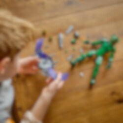Fly av sted på spennende eventyr med en ekstra stor og superbevegelig byggefigur av Green Goblin! Superskurken kan vri og snu seg mens han fyker av sted på svevebrettet og kaster gresskarbomber, akkurat som i Marvel Studios-filmen Spider-Man No Way Home. De actionfylte eventyrene tar aldri slutt når du har den største skurken i hele Spider-Man-universet i hendene dine!