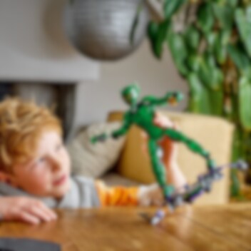 Settet består av 471 deler, og Green Goblin-byggefiguren er 24 cm høy. Den er stor nok for episke eventyr, og liten nok til å kunne tas med overalt.