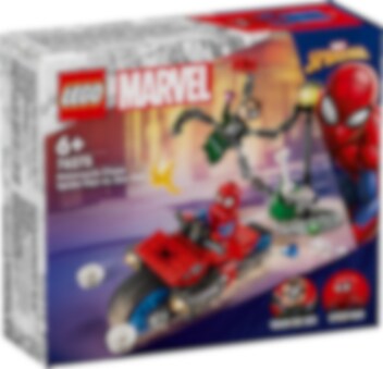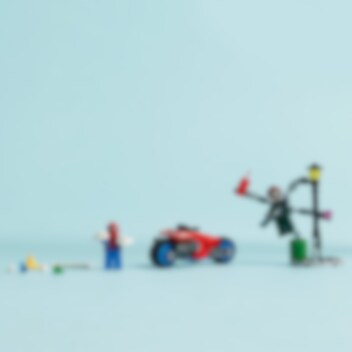 Dette supertøffe settet inneholder en venomifisert skurk og Spider-Man på motorsykkel. LEGO® Marvel Motorsykkeljakt: Spider-Man mot Doc Ock (76275) er en byggbar Spider-Man-leke med kult tilbehør for superhelt-fans fra seks år. Inkluderer minifigurer av LEGO Doc Ock og Spider-Man. Doc Ock har fire lange og bøyelige tentakler og Venoms karakteristiske markeringer. Venom har infiltrert Doc Ock og gjort ham til en enda større skurk. Minifigurene kan gripe tak i elementer, inkludert en gatelykt, dynamitt og søppelkasse med en flaske, fisk, bein og bananskall oppi. Spider-Mans motorsykkel samt knotte- og nettskyterne gir barn farts- og actionfylte eventyr. For ekstra digital moro kan barn zoome inn, rotere modeller i 3D og spore framdriften sin ved hjelp av den gøyale og intuitive LEGO Builder appen.