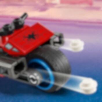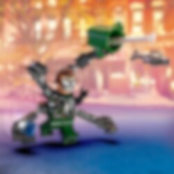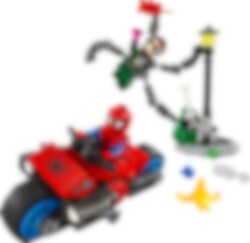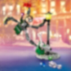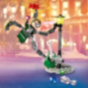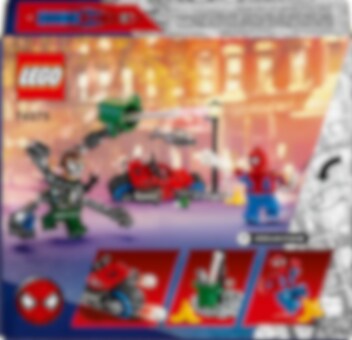 Den venomifiserte Doc Ock stikker av med de stjålne diamantene! Spider-Man kaster seg på motorsykkelen for å ta opp jakten på den mangearmede skurken mens han fyrer av skyterne sine. Doc Ock henger fra en gatelykt og kaster et bananskall mot motorsykkelen. Med en annen arm velter han en søppelkasse foran Spider-Man, mens han samtidig kaster dynamitt med ENDA en av armene sine! Du bestemmer om Spidey skal beseire Doc Ock og ta tilbake diamantene i dette LEGO® Marvel eventyret!