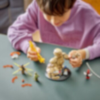 Ser du etter en populær gave til unge superhelter, er LEGO® Marvel Spider-Man mot Sandman: Sluttoppgjøret (76280) en byggbar actionleke som garantert vil falle i smak hos Marvel filmfans. Settet gjenskaper kampscenen fra Marvel Studios-filmen Spider-Man: No Way Home og er en flott gave til barn fra ti år. Det mangefasetterte, byggbare LEGO Marvel Spider-Man settet inkluderer tre skurker: Sandman, Electro og Lizard (dette er det første LEGO Marvel settet med en minifigur av Lizard). Minifigurene kan plasseres mange steder for utallige leke- og utstillingsmuligheter. Barn kan vri og vende på den fullt bevegelige figuren av Sandman og bruke de digre hendene hans til å gripe tak i Spider-Man som svinger seg over ham i sitt fleksible «nett-tau». Barn kan få enda mer lek ved å kombinere settet med Spider-Man: Sluttoppgjøret (76261), som selges separat. For ekstra digital moro kan barn zoome inn, rotere modeller i 3D og spore framdriften sin ved hjelp av den gøyale og intuitive LEGO Builder appen.
