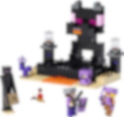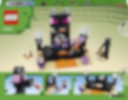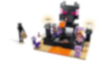 Minecraft®-kamper blir ikke mer episke enn disse på LEGO® Minecraft End-arena (21242). Spillere fra åtte år må bruke alt de har av Minecraft-ferdigheter for å overleve den gøyale og actionfylte leken. Kamper mellom spillere Minecraft-spillere setter en End-kriger og en dragebueskytter mot hverandre på den legendariske End-arenaen. Krigerne er utstyrt med rustning og våpen, men de må også overvinne andre farer hvis de skal overleve. Et trykk får statuen av Enderdragen som rager over arenaen, til å skyte lavablokker ut av munnen, og et bevegelig gulv som glir til side så en lavasjø kommer til syne under føttene deres. Det er flere lekemuligheter inspirert av to populære Minecraft-mober – en Ender-mann og en shulker – og velkjent tilbehør fra spillet, inkludert en gyllen gulrot og en eliksir. LEGO Builder appen byr på ekstra digital moro med intuitive verktøy for zooming og rotering som barn visualiserer modellen med mens de bygger.